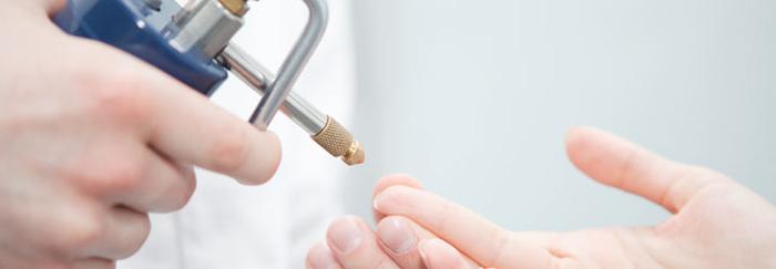 - Криодеструкция – этот метод наиболее эффективен для устранения небольших и одиночных кондилом у мужчин. Процесс осуществляется с использованием жидкого азота, оксида азота или углекислого газа, при котором замораживается как внеклеточная, так и внутриклеточная жидкость, что приводит к гибели поражённых тканей. Если имеется несколько кондилом, выбор метода лечения изменяется, или криодеструкция выполняется несколько раз. К недостаткам данного метода можно отнести травматичность: могут образовываться пузыри, гиперемия и отеки. Использование специального геля для отделения кондиломы от здоровых тканей позволяет после заморозки аккуратно убрать мёртвые наросты.