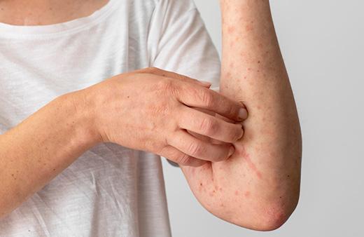 Существует особая форма, известная как искусственная крапивница, при которой при проведении ногтем по коже образуются зудящие волдыри.