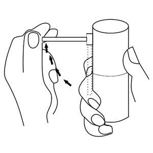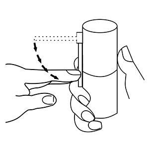 - Держите флакон вертикально, поднимите насадку колпачка под углом 90° к флакону.