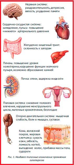Рис. 1. Наиболее характерные клинические проявления гипотиреоза
