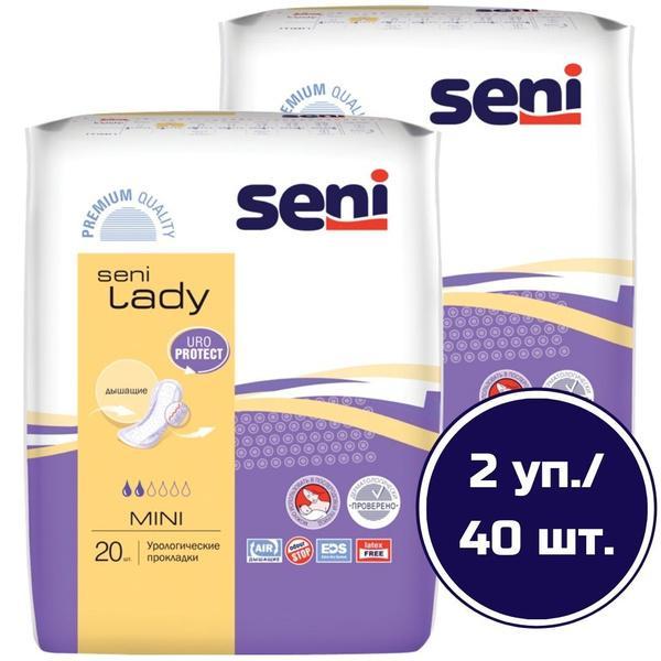 Урологические прокладки женские SENI LADY mini, упаковка по 20 шт., всего 40 шт. Прокладки Paul Hartmann МолиМед Классик Мини, 2 капли, 280 мл, 28 штук.
