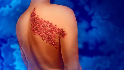 При диссеминированной форме опоясывающего герпеса высыпания охватывают всю поверхность тела.